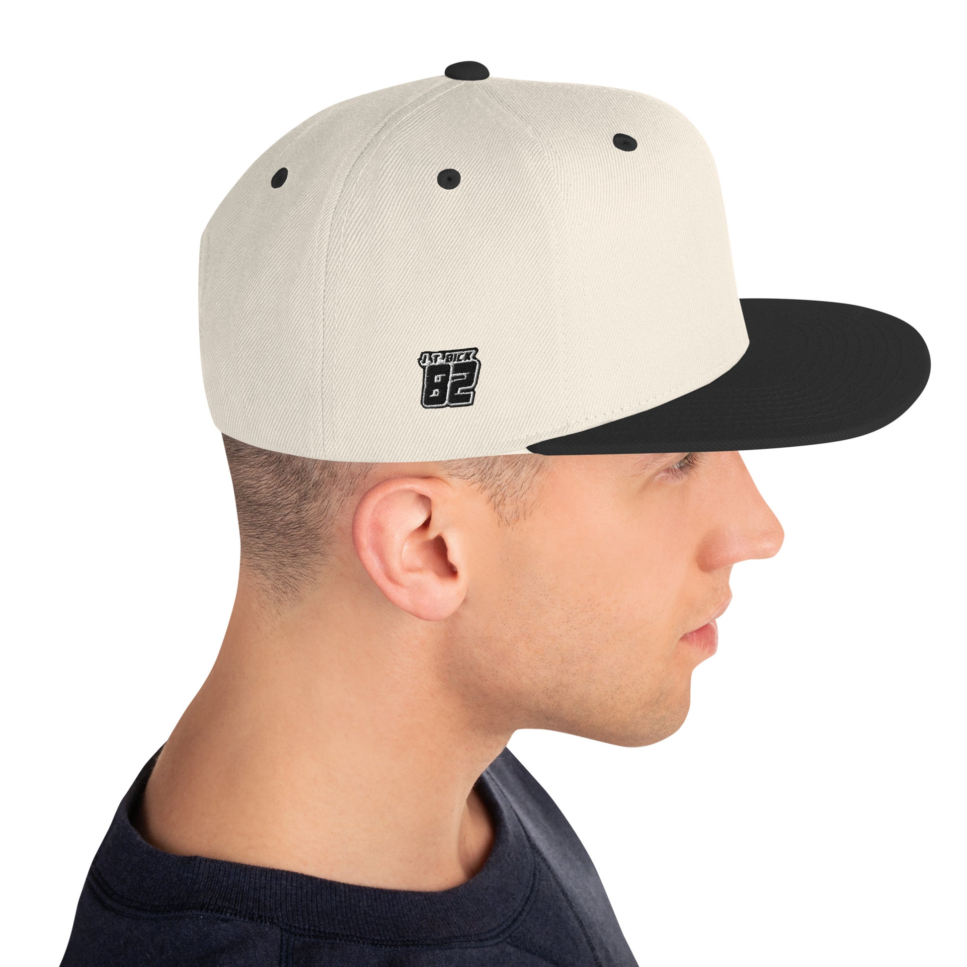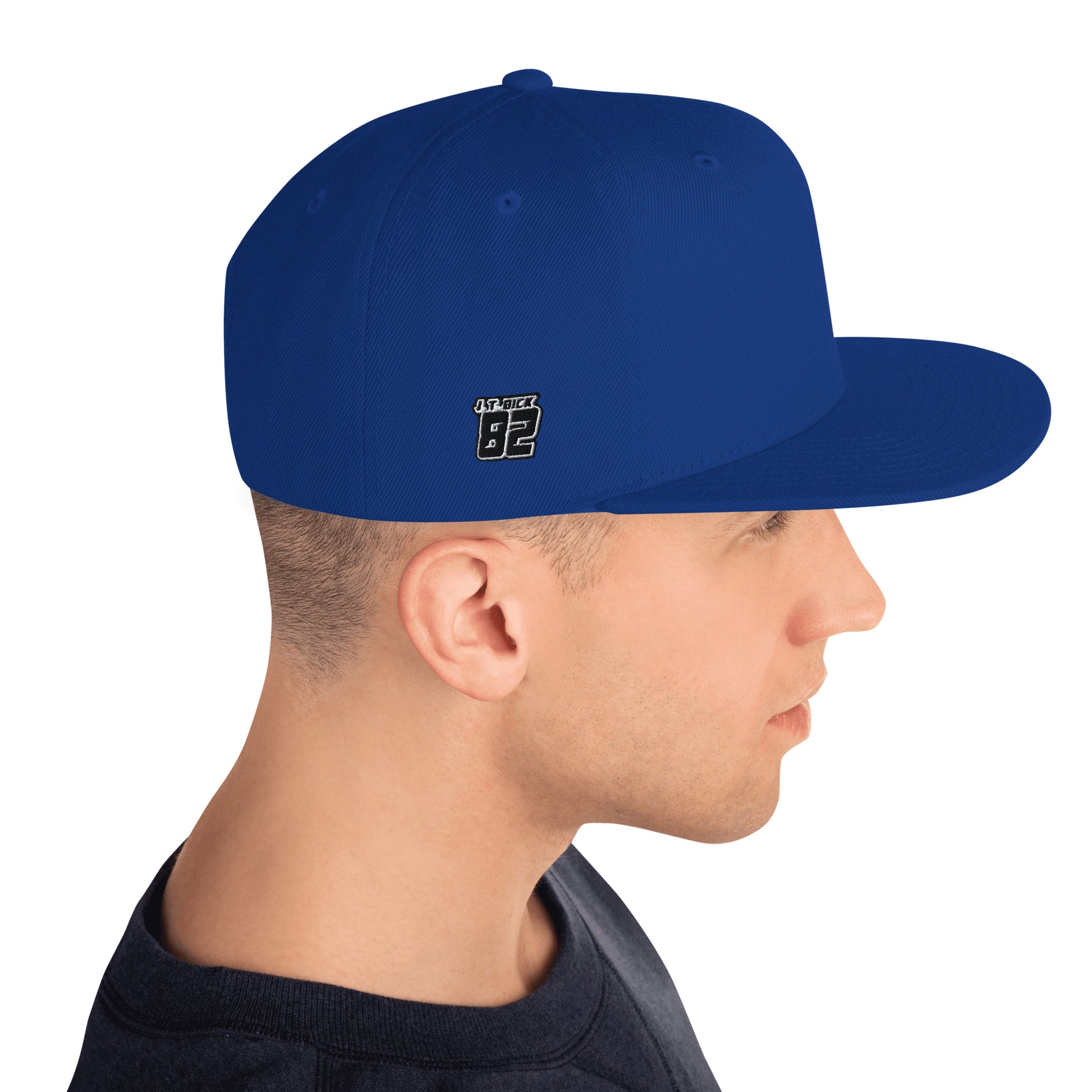 This hat is structured with a classic fit, flat brim, and full buckram. The adjustable snap closure makes it a comfortable, one-size-fits-most hat.